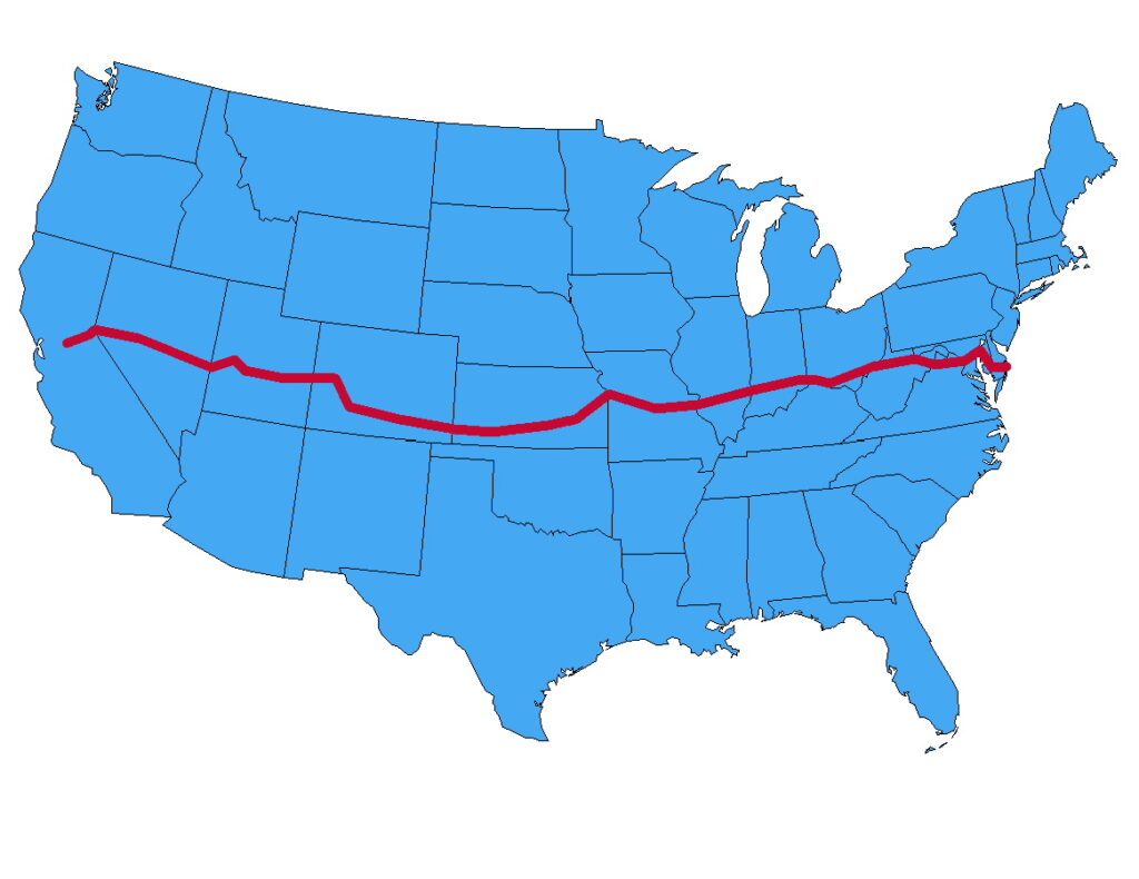 Turen går kust till kust West Sacramento CA (via San Francisco) – Washington DC på hemliga, mytomspunna U.S Route 50.